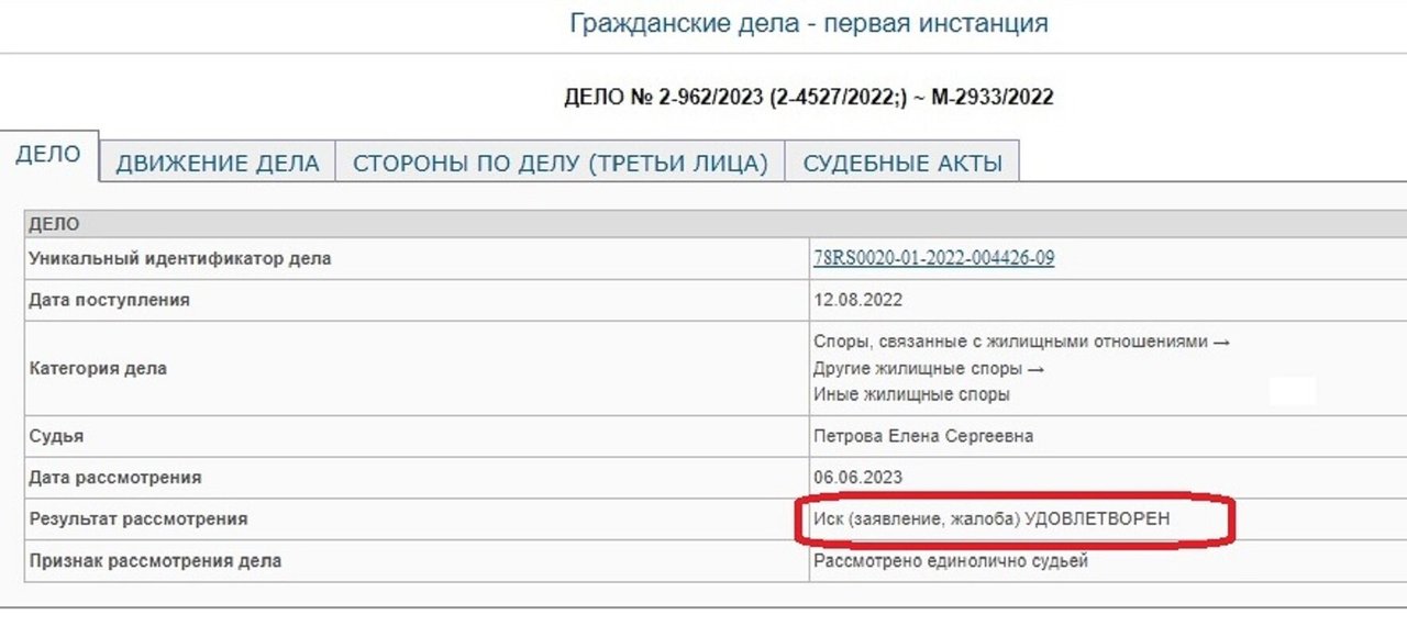 Спасибо ей! По решению суда я наконец-то получу жилье.
